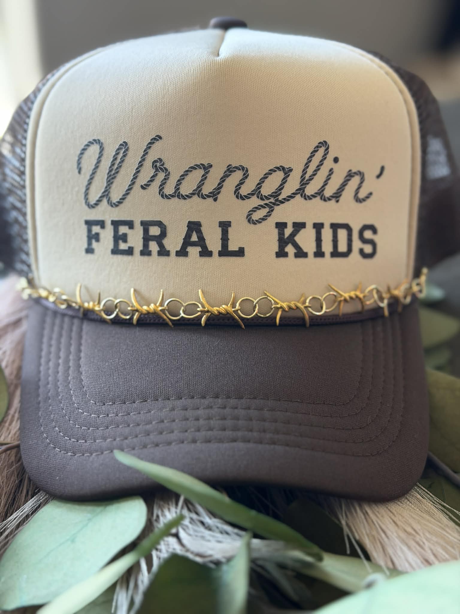 Wranglin' Feral Kids- Edgy Trucker Hat- Gold Barbed Wire Chain- Hat Chains